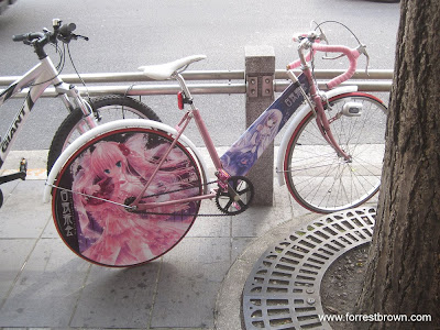 I’ve seen this strange bike a couple of times in Akihabara. The owner is always careful to make sure the back tire is rotated so that the graphics is straight.